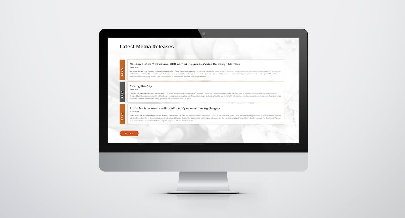 Our design brief was to produce a corporate-looking, governmental website that appealed to lawyers, senior public servants, corporate decision-makers, Traditional Owners and their representative bodies. We wanted to represent the ancient lands and Indigenous culture by using the red earth and pale ochre colours of outback Australia. The tones of grey represent authority, power, and the politics of liaising with corporate, legal, and governmental stakeholders that engage with the NNTC.